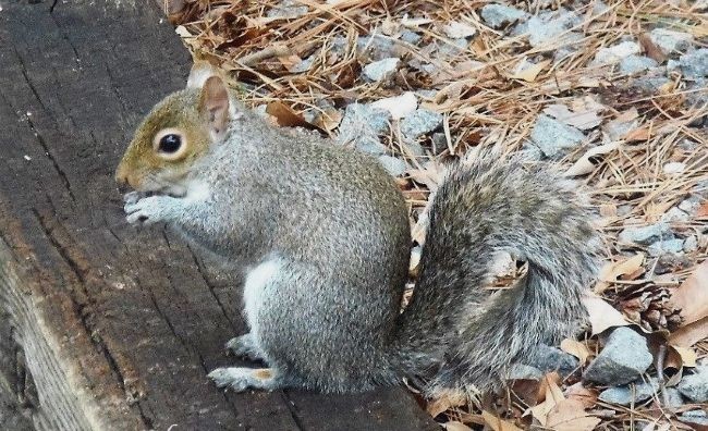 There was one squirrel that sat on the step while I was on the porch. I named him Henry. The photo is not him. He was a chunky squirrel and loved eating peanuts that I gave him while I was on the porch. No matter where he was if I was on the porch he would come running for his peanuts. I haven’t seen him now for at least a couple of years.